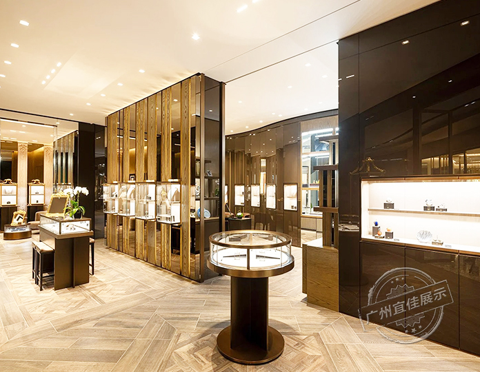 BUCCELLATI布契拉提珠寶展柜采用頂級不銹鋼材質(zhì),經(jīng)過高精度CNC加工和特殊氧化處理,材質(zhì)輕巧卻異常堅(jiān)固,具有出色的抗變形和腐蝕性能,為珠寶提供持久保護(hù)。新店的設(shè)計(jì)延續(xù)了以往品牌店的風(fēng)格:棕色外觀與內(nèi)部金色墻面相得益彰,展現(xiàn)意式優(yōu)雅的同時又不失現(xiàn)代魅力。品牌標(biāo)志性的仿古展示櫥窗引人注目,搭配精致的拉絲金屬紋理和高光漆面,將意式美學(xué)體現(xiàn)在店內(nèi)的每個細(xì)節(jié)中。展柜不規(guī)則的布局和獨(dú)特的呈現(xiàn)方式,為空間增添了深度和趣味性。
