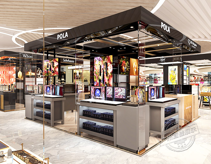 日本化妝界四大花旦之一的POLA,作為日本高級的貴婦品牌,店里的風格也和他家護膚品一樣是簡約大氣的,主打黑色系格調(diào),神秘又奢華,真的能讓人一眼就駐足!高端化妝品展柜設(shè)計高級奢華,黑色為主色調(diào),風格奢華優(yōu)雅,滿滿的高級感,營造出流行而考究的奢華空間,讓消費者更好的感受到皇室的品質(zhì)和美麗肌膚的傳奇!