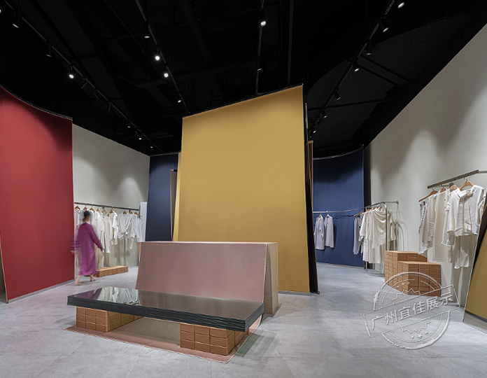 TU原創(chuàng)設(shè)計(jì)師品牌,以“簡(jiǎn)潔優(yōu)雅”為品牌理念,此快閃店由成品瑜伽磚和青玻組合的中島,加上簡(jiǎn)潔不銹鋼服裝展架組成,風(fēng)格上不拘束,溫柔但也有力量,用簡(jiǎn)單的構(gòu)造來(lái)實(shí)現(xiàn)較大的效果。